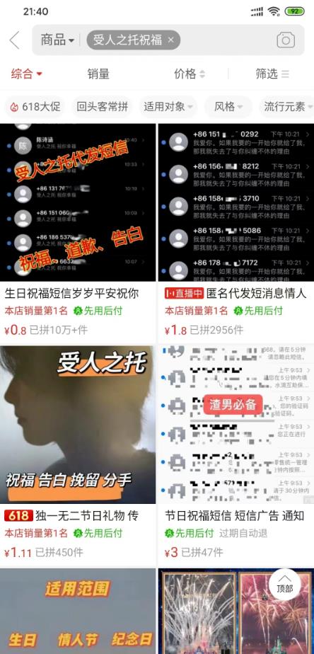 所以会选择找陌生人发送这些短信,反正一条短信的价格也很便宜,这些一般都是表白、道歉、分手、祝福之类的。