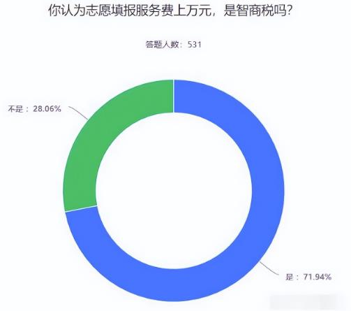 我对志愿填报项目也看过具体的问卷调查,经过核实531人中有28%的人觉得有价值,而72%的人认为这是割韭菜的行为。
